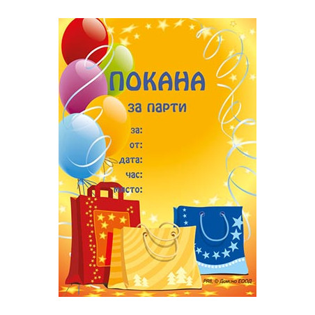 • Покана за рожден ден, 10 бр.