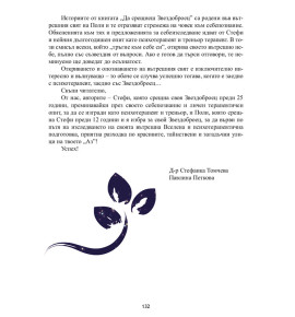 Книгата "Да срещнеш Звездоброец. По пътя на себепознанието" е покана за среща със себе си. "Това е книга пътеводител, ненатрапчив психологически съветник и разказвач", в която деликатно се преплитат приказни истории за размисъл и теоретико-практически предложения за себепознание!